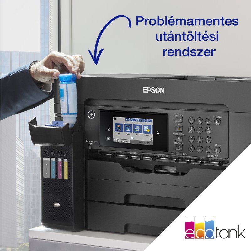 - Az EcoTank használatával egyszerűen nyomtathat mobiltelefonról, táblagépről és laptopról. A Wi-Fi és Wi-Fi Direct szolgáltatással dokumentumokat küldhet okoseszközökről az Epson iPrint alkalmazással.