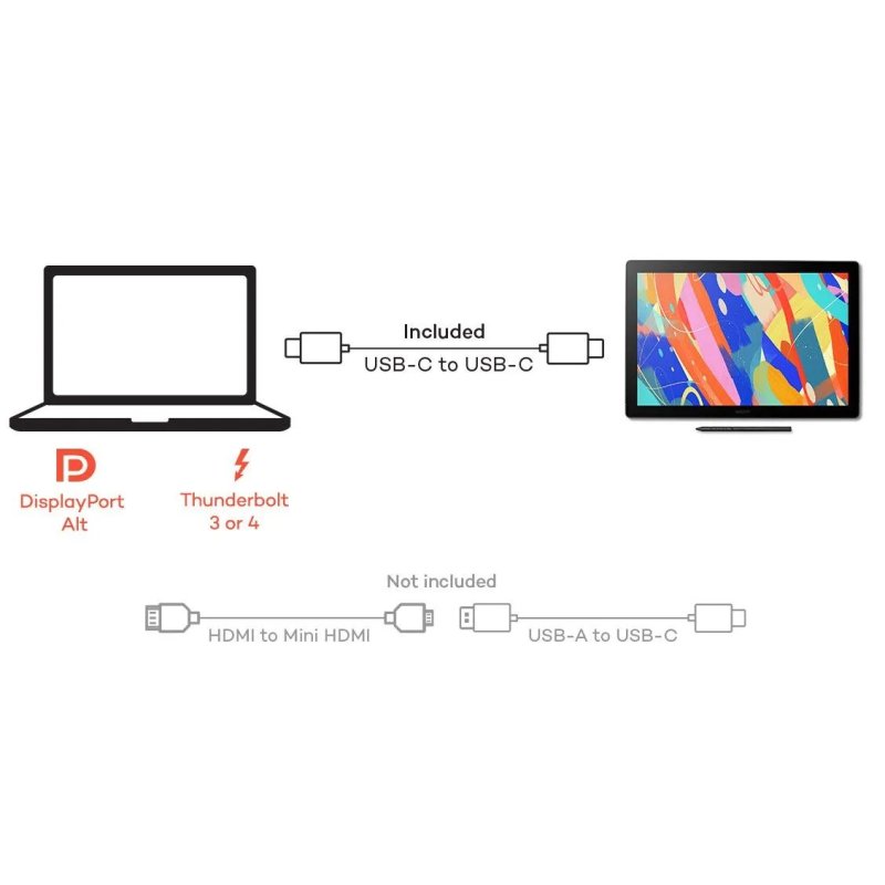 | Tartozékok | Wacom Cintiq Wacom Pro Pen 3 Cintiq változtatható szögű tolltartó Csere hegyű készlet (1 standard, 1 filc) Hegy eltávolító eszköz Hálózati adapter + csatlakozódugó 2x - USB Type C - C kábel (1,8 m Gyors üzembe helyezési útmutató és szabályozási lap |