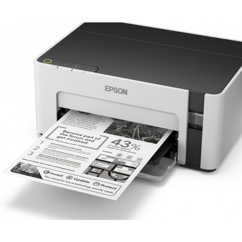 Ez a tartós, gyors és energiatakarékos EcoTank nyomtató újratölthető tintatartállyal rendelkezik, így segít leszorítani a nyomtatási költségeket. Költséghatékony megoldás, hiszen a nyomtatóhoz mellékelt fekete tintával akár 5000 oldal is kinyomtatható. A nyomatokat rövid időn belül kézhez kapja, hiszen nincs felmelegedési idő, és a nyomtató akár 15 oldal/perc sebességre is képes. Az M1100 USB-n keresztül csatlakoztatható a számítógéphez, és 150 lapos papírtálcával rendelkezik.