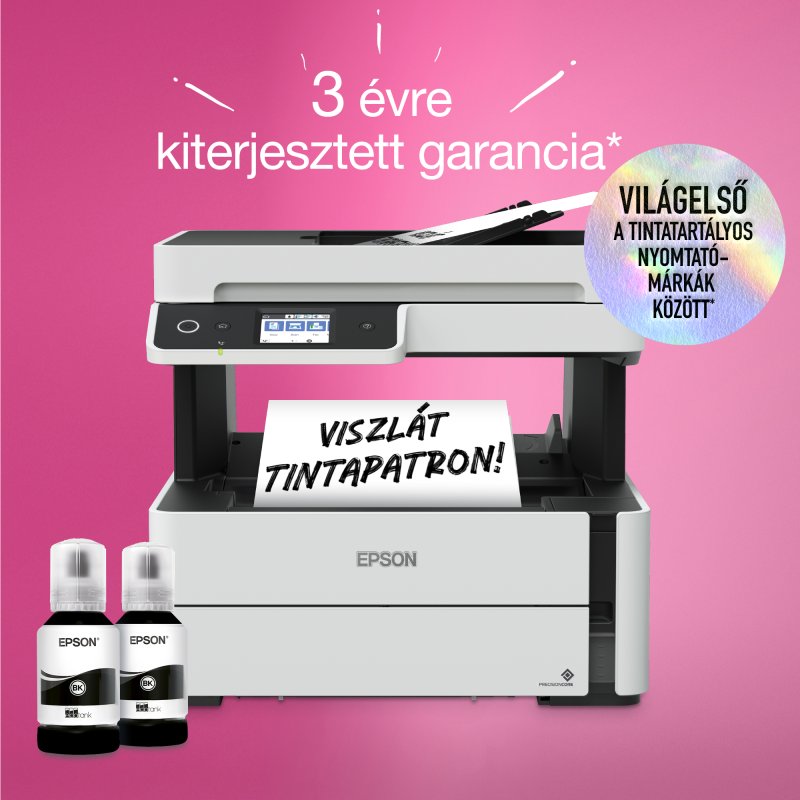 - Nyomtasson akár 11 000 oldalt a mellékelt palackokkal: Csak tegyen bele papírt, és már indulhat is a kevés beavatkozással járó nyomtatás!