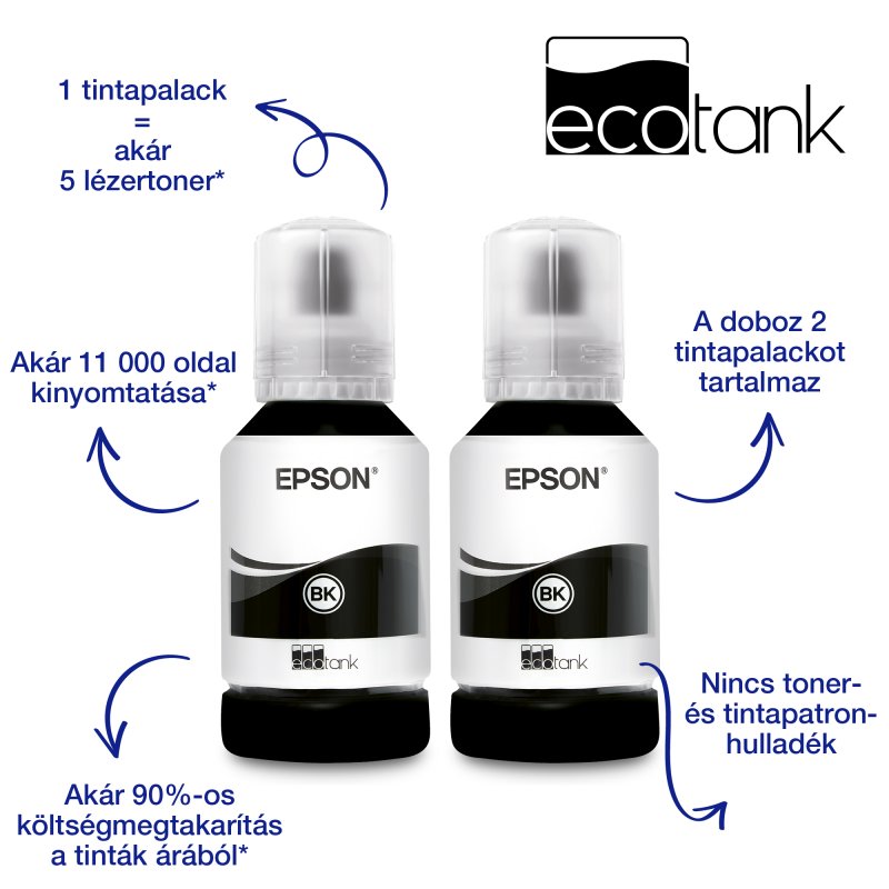 - Nagy tintakapacitás: Nyomtasson akár 11 000 oldalt a mellékelt tintával