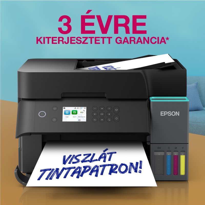 - Akár 3 évre elegendő kezdő tintacsomag A mellékelt tintákkal akár 15 100 fekete-fehér és 5500 színes oldalt nyomtathat