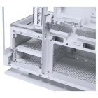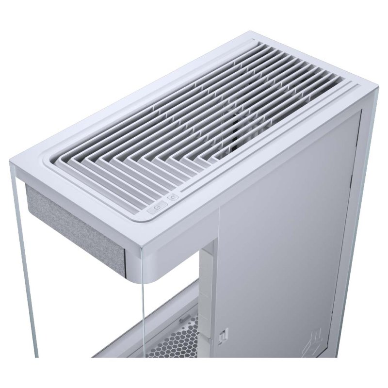 Az Evolv X2 lényegében újraértelmezi az asztali számítógépet átlátszó üvegkialakításával, prémium alumínium paneljeivel és hatékony függőleges hűtési megoldásával. A ház a talpa fölött lebeg, beszívja a friss levegőt, és hatékonyan elvezeti azt a GPU-n és a CPU-n keresztül, a forró levegőt pedig a felső szellőzőnyílásokon keresztül távozik a fokozott hőteljesítmény érdekében. Belül a hűtőkomponensek a tetejébe és az alapjába simulnak, teljesen integrált megjelenést kölcsönözve, zökkenőmentesen illeszkedve a hardverhez.