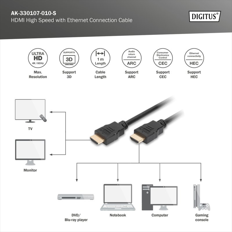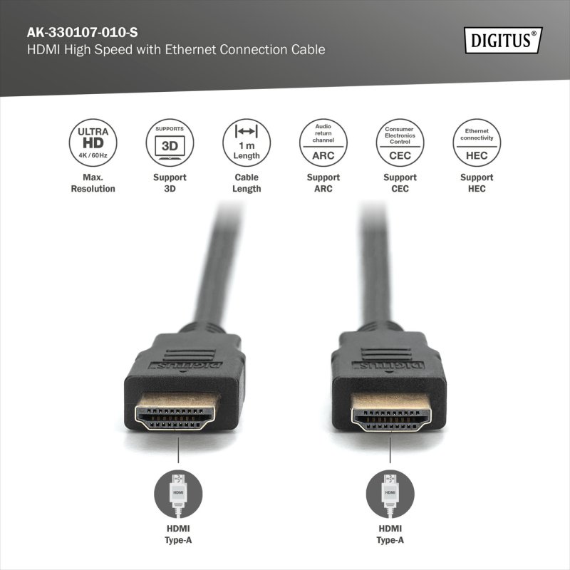 DIGITUS HDMI kábel A-típus 1m - Fekete