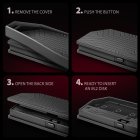 Nagy előnye a doboz csavarmentes nyitása. Csak nyomja meg az oldalán lévő gombot az alsó fedél feloldásához. A lemezek cseréje olyan egyszerű és gyors.