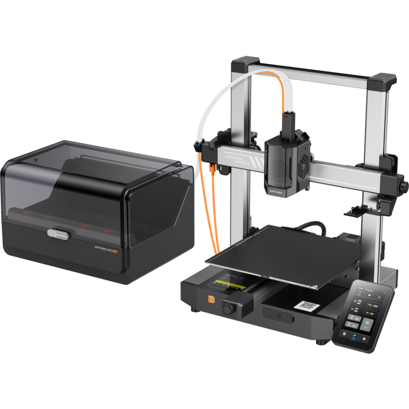 Az Anycubic Kobra 3 Max Combo egy nagyméretű, nagy sebességű FDM 3D nyomtató, amelyet kifejezetten nagyobb modellek és sorozatgyártás hatékony elkészítésére terveztek. A Combo csomag részeként érkező többanyag-kezelő rendszerrel a készülék lehetővé teszi a több színnel vagy anyaggal történő, automatizált nyomtatást is.