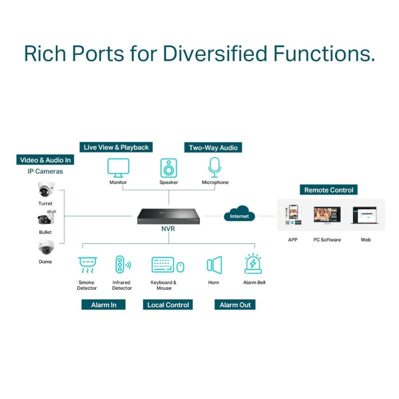 320 Mbps bejövő és kimenő sávszélesség: Biztosítja, hogy az NVR több, nagy felbontású kamerát kezeljen.