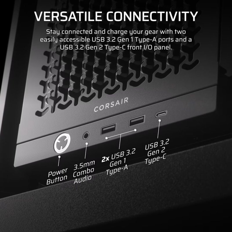 | Előlapi csatlakozók | 1x USB 3.2 Gen 2 Type-C 2x USB 3.2 Gen 1 Type-A 1 x Audio be/ki |