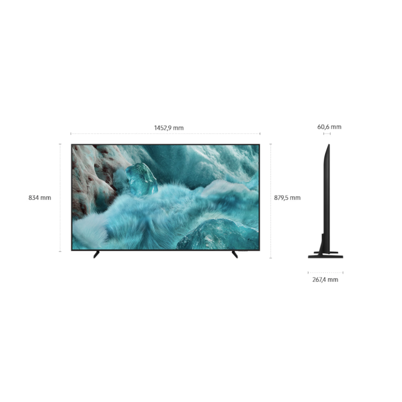 65 hüvelykes, 3840 x 2160 4K, QLED, 50Hz, HDR10+, Q4 AI Processzor, Quantum Dot, WiFi 5, Bluetooth 5.3, Tizen™ Smart TV operációs rendszer, Beépített hangszóró, 3 x HDMI, 1 x USB-A